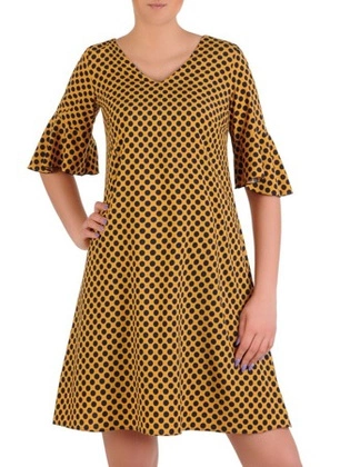 Sukienka w groszki, musztardowa kreacja w luźnym fasonie 20386.