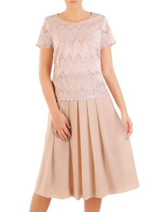Rozkloszowana sukienka na wesele, kreacja z koronkowym topem 30432
