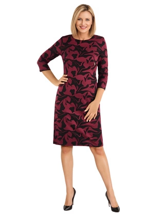 Granatowa kreacja, prosta kreacja z oryginalnej dzianiny 26006