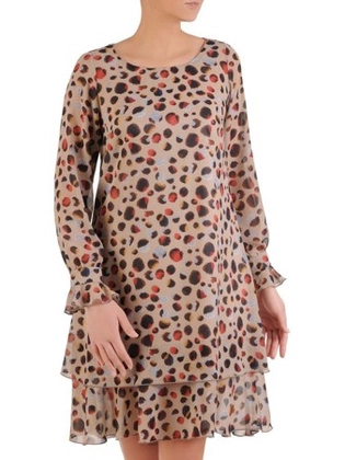 Sukienka z szyfonu, luźna kreacja z falbanami 25625