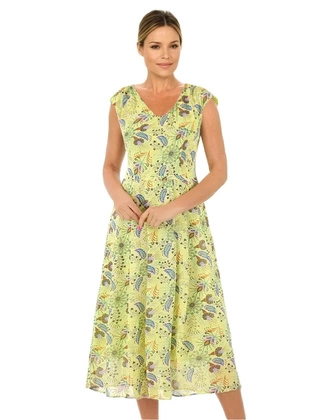 Sukienka damska, letnia kreacja midi w wyszczuplającym wzorze 38100