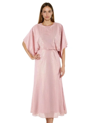 Zwiewna sukienka damska, kreacja z ozdobnie wyciętymi rękawami 29360