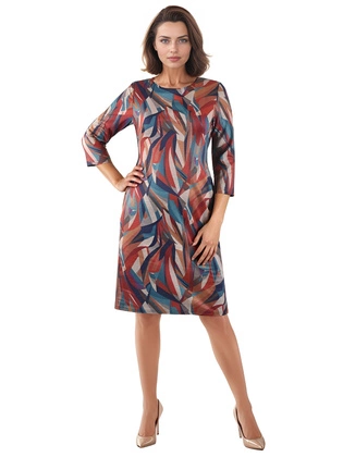 Wielokolorowa sukienka damska midi z dzianiny – modna sukienka wyjściowa na jesień 40438