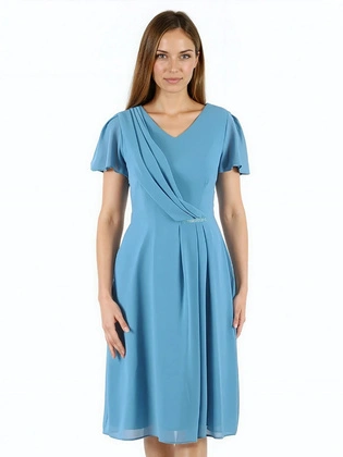 Prosta sukienka z finezyjnymi rękawami, kreacja na każdą okazję 31186