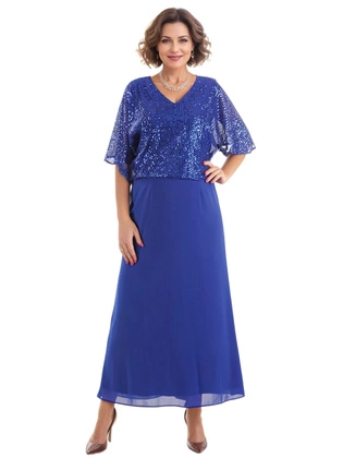 Maksi sukienka połyskująca z ozdobną aplikacją w pasie 33702