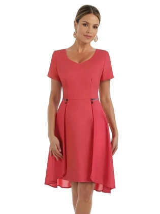 Sukienka z ozdobnymi zamkami Emilia XIII, piękna kreacja w kolorze chabrowym.