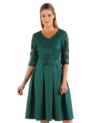 Sukienka z ozdobnym szalem, szmaragdowa kreacja z koronki 22306