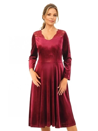 Aksamitna sukienka z koronkowymi wstawkami na ramionach 34830