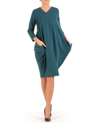 Luźna, zielona sukienka maskująca wszelkie niedoskonałości 27925