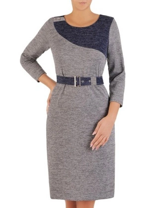 Prosta sukienka z dzianiny, kreacja z paskiem 27221