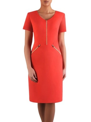 Sukienka z ozdobnymi zamkami Emilia VI, piękna kreacja w kolorze koralowym.
