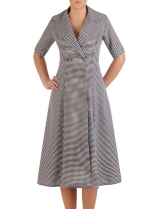 Kopertowa sukienka z modnym kołnierzem 18574, rozkloszowana kreacja w pepitkę.