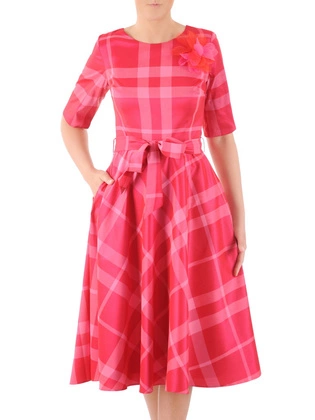 Jesienna sukienka w modną kratę, luźna kreacja z ozdobną zakładką 30700