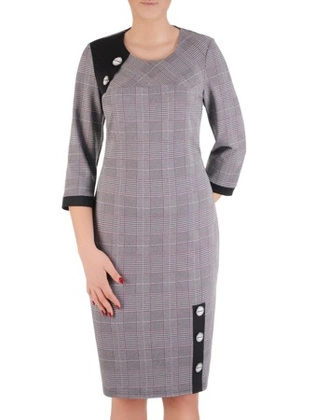 Sukienka w kratę, modna kreacja z ozdobnymi guzikami 27734