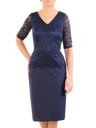 Elegancka sukienka z baskinką, kreacja z koronkowym topem 31507