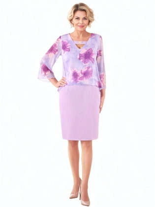Elegancki komplet damski na wesele, komunię – sukienka w kwiaty z gładkim żakietem na jeden guzik, stylowy i szykowny zestaw 39635