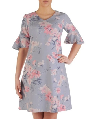 Sukienka w kwiaty 19532, wiosenna kreacja w fasonie do trapezu 19532.
