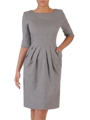 Sukienka w kratkę, kreacja z plisowanym dołem 33283