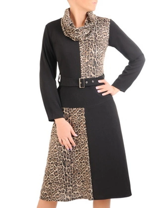 Sukienka damska 18477, wyszczuplający fason w panterkę.