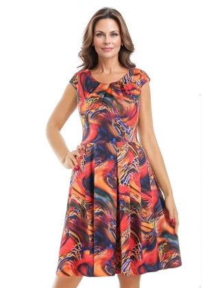 Wzorzysta, rozkloszowana sukienka z kopertowym dekoltem 30914