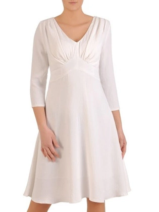 Lniana sukienka z ozdobnie wyciętym dekoltem 29021