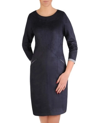 Nowoczesna sukienka z zamszu, granatowa kreacja z kieszeniami 19084