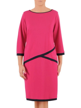 Dzianinowa sukienka z wyszczuplającymi, kontrastowymi paskami 36689