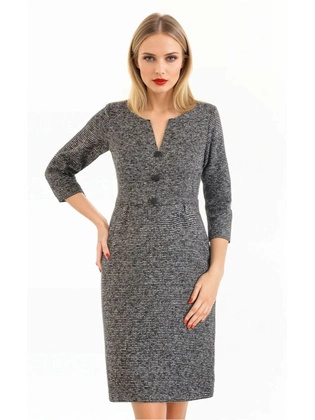 Grafitowa sukienka damska z ozdobnie wyciętym dekoltem 34061