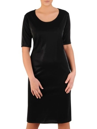Luźna sukienka z połyskującej dzianiny, kreacja z kieszeniami 22796