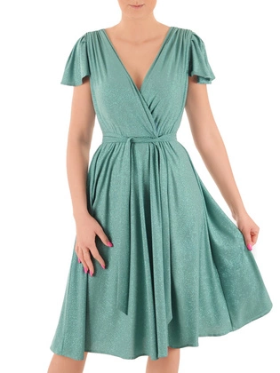 Sukienka na wesele, elegancka, kopertowa kreacja z ozdobnym brokatem 38201