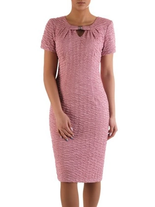 Sukienka z dzianiny, jesienna kreacja z ozdobną broszką 30867