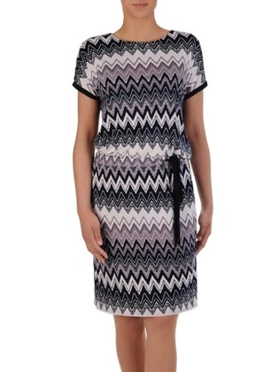 Sukienka damska 16407, dzianinowa kreacja w geometrycznym wzorze.