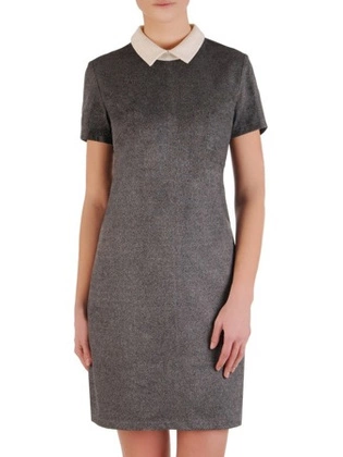 Elegancka sukienka z kołnierzykiem Elfryda I, szara kreacja w stylu pensjonarskim