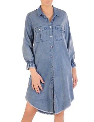Współczesny denim to nie tylko sztywny, gruby materiał. W naszej kolekcji znajdziesz modele wykonane z miękkiego, cienkiego tencelu, który pięknie układa się na sylwetce i jest niezwykle przewiewny, jak i klasyczne, modelujące fasony z dodatkiem elastanu. Dzięki temu sukienki jeansowe są przyjazne dla każdego typu figury. Paniom o pełniejszych kształtach dedykujemy specjalnie skrojone Sukienki dżinsowe dla puszystych, które dzięki przemyślanym przeszyciom i odpowiedniej gramaturze materiału, fantastycznie wysmuklają sylwetkę, ukrywając ewentualne niedoskonałości i podkreślając atuty.