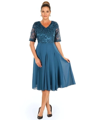 Sukienka na wesele plus size, komunię, elegancka kreacja z chabrowej koronki i tkaniny 16921