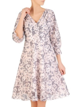 Wyszczuplająca sukienka z koronkową wstawką 17869, nowoczesna kreacja wizytowa