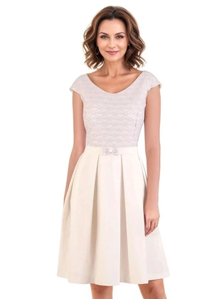 Elegancka sukienka z podwyższonym stanem, kreacja z tkaniny i koronki 32338
