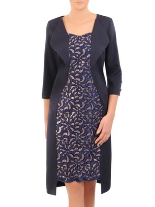 Elegancka sukienka z imitacją żakietu Zoika, wyszczuplająca kreacja wizytowa.