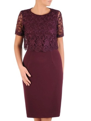 Sukienka z ozdobnym karczkiem, elegancka kreacja z tkaniny i koronki 20003.