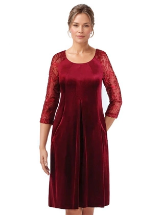 Trapezowa sukienka z koronkowym karczkiem i rękawami 24514