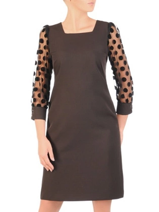 Sukienka damska, elegancka sukienka w wyszczuplającym fasonie z przeźroczystymi rękawami 7719