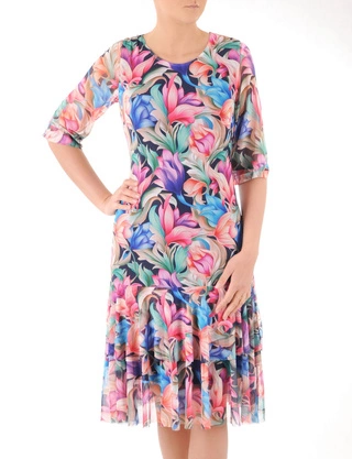 Sukienka damska 15396, prosta kreacja w kwiaty.
