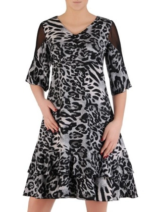 Luźna sukienka w panterkę, elegancka kreacja z ozdobnym wykończeniem 19582