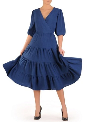Modna sukienka midi, rozkloszowana kreacja z falbanami 28220