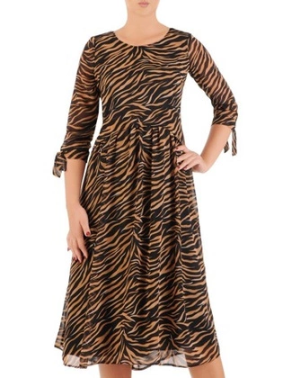 Sukienka z szyfonu, trapezowa kreacja z ozdobnymi rękawami 23614