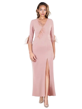 Elegancka sukienka maksi z ozdobnymi piórkami 35667