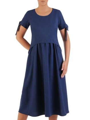 Sukienka z lnu, granatowa kreacja w luźnym fasonie 26432 (dłuższa wersja)