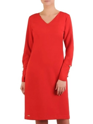 Prosta sukienka z ozdobnymi guzikami na mankietach 24243