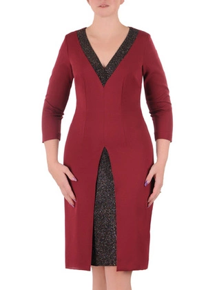 Elegancka, bordowa sukienka z połyskującymi wstawkami 35122