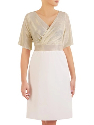 Wieczorowa sukienka z połyskującym topem i kopertowym dekoltem 30933